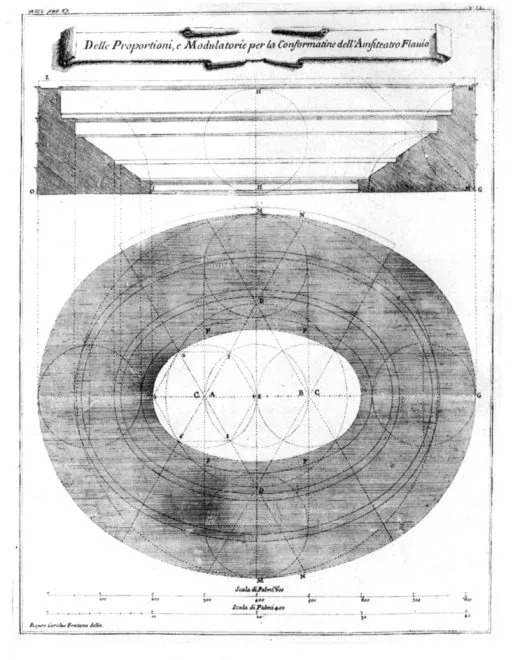 of the Colosseum started with Carlo Fontana, who, around 1720, made a survey of the amphitheatre and studied its geometric proportions. Most of the ground floor of the building was by now almost submerged by earth and debris accumulated over the centuries, and the arches were used as a deposit for manure.