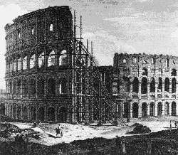 A counter proposal was presented to the Pope by one Domenico Schiavoni, possibly a master mason who had been assisted by an architect. He suggested turning the endangered part itself into a buttress by demolishing the upper parts along an oblique line and by walling in some arches. This intervention – they said – would produce the appearance of a natural ruin.