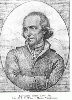 Carlo Fea, Commissioner to the Antiquities, visited the monument and in 1804 wrote a memorandum suggesting the structure to be cleaned by taking away the manure, unearthing the entrance steps and freeing the entire first corridor. He pointed out the importance of consolidating the north east corner, which was in danger of collapse. One week after the presentation of the report there was an order from the Quirinale to clear the Colosseum from abuses.