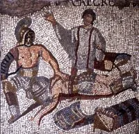 Cependant, les paires de gladiateurs qui combattaient dans l’arène étaient fixes : le combat était équilibré dans le sens que le gladiateur avec des armes plus offensives avait moins de moyens de défense.